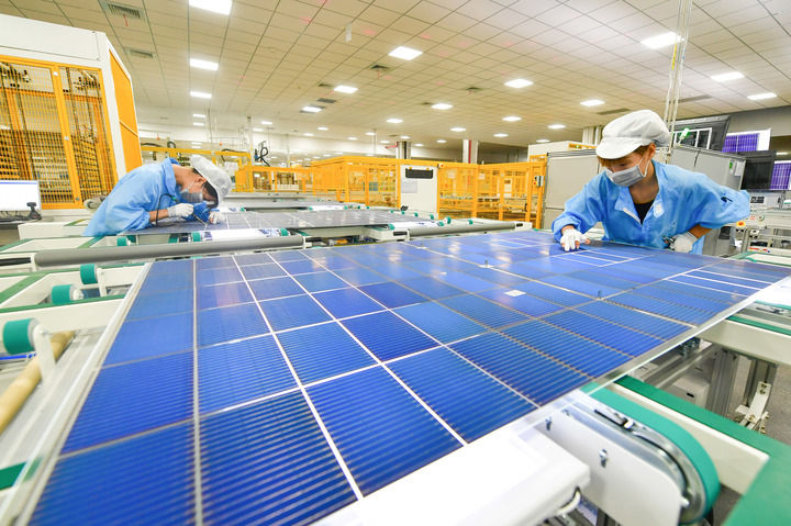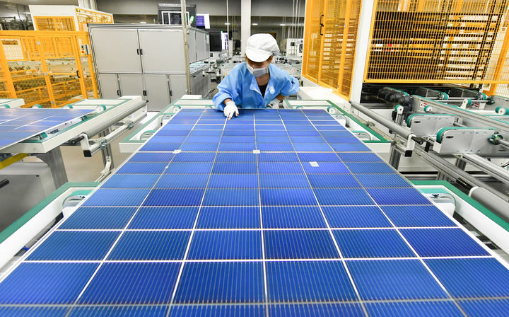 安徽華晟新能源科技股份有限公司的異質結光伏電池及組件工廠內(nei) 景(8月20日攝)。