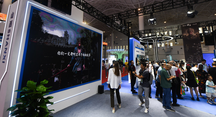 數博會(hui) 上,國產(chan) 遊戲《黑神話:悟空》備受矚目。山西展團以遊戲中“悟空”路線為(wei) 主題,重點展示了一批介紹山西古建築、曆史文化遺產(chan) 的出版物,“悟空拍照區”成了“熱門打卡地”。