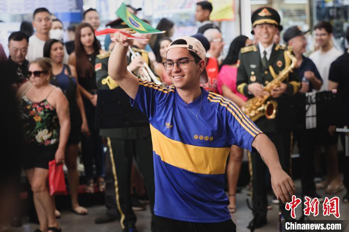 當《巴西水彩畫》《依帕內(nei) 瑪的女孩》等巴西當地耳熟能詳的樂(le) 曲響起時,現場氛圍掀起一個(ge) 高潮,熱情奔放的巴西民眾(zhong) 紛紛走進“舞台”中央,跟著節奏扭起了巴西特色的桑巴舞,還有人情不自禁地哼起了歌曲。