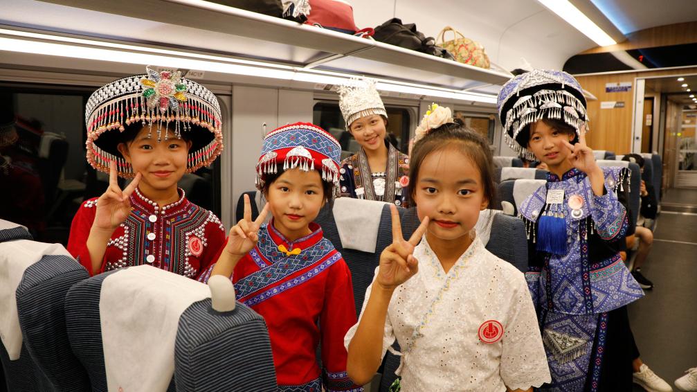 金秋九月,雲(yun) 南寧洱哈尼族彝族自治縣的青少年宣講團,在中老鐵路寧洱至昆明路段宣講民族團結誓詞碑故事。