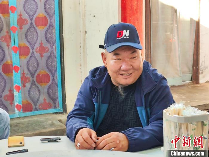 9月20日,阿拉善右旗雅布賴鎮嘎查牧民阿拉騰格日樂(le) 接受記者采訪。中新社記者 陳溯 攝