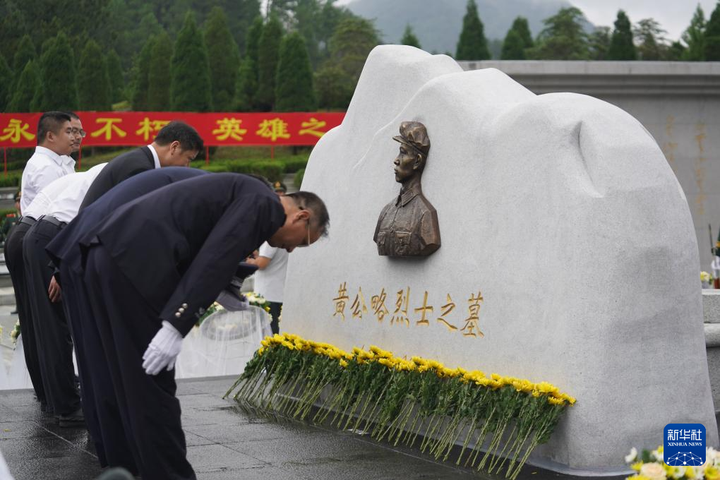 9月25日,全體(ti) 人員向黃公略烈士脫帽默哀。新華社記者 周密 攝