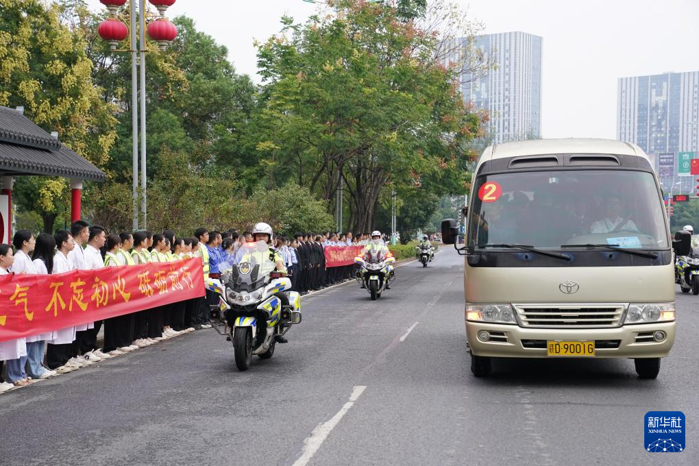 9月25日,載有黃公略烈士遺骸的車輛從(cong) 吉安市青原區市區經過,市民在街道兩(liang) 旁送別。新華社記者 周密 攝