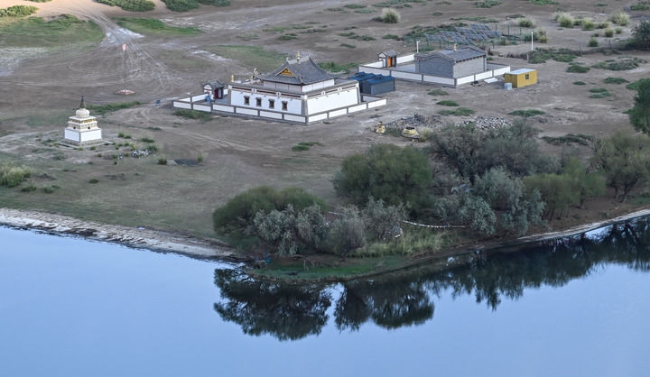 驅車深入巴丹吉林沙漠,翻過數不盡的沙丘,來到水草豐(feng) 美的廟海子。這裏四麵環沙山,一座200多年前的白牆金頂寺廟坐落在湖邊,為(wei) 雄渾壯闊的自然景象抹上一筆濃厚人文氣息。觀者無不感歎,當年交通不便,如何在沙漠腹地建成如此精美的建築。