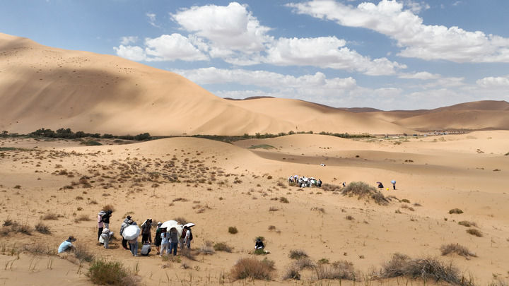 巴丹吉林的壯美引人入勝,其神秘更令人向往,各地科研團隊紛至遝來。內(nei) 蒙古中哈駱駝研究院院長吉日木圖帶領團隊多次來到巴丹吉林沙漠,在過去的20多年裏,推動了駱駝基因組、納米抗體(ti) 和駱駝產(chan) 品研發等方麵的研究。這些科研成果不僅(jin) 填補了國內(nei) 外的空白,還為(wei) 當地生態保護和經濟發展提供了科技支持。