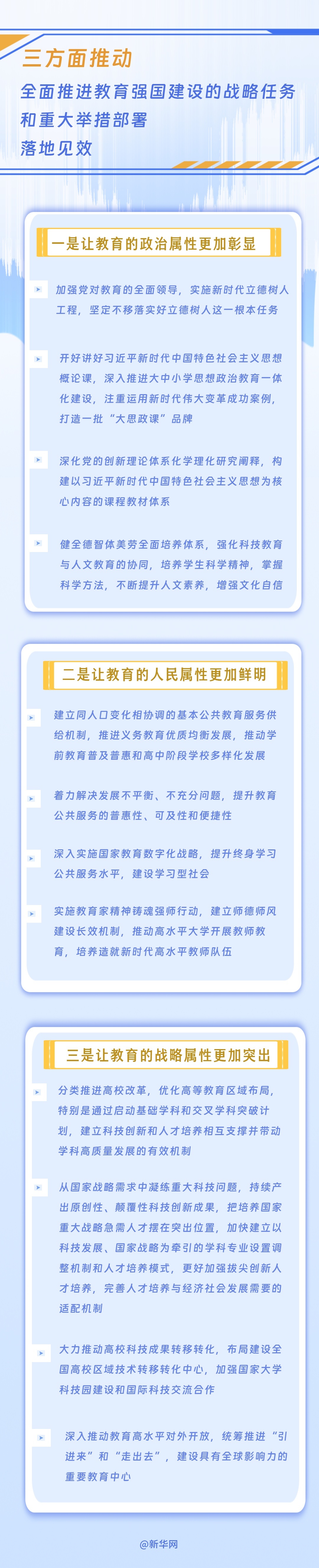 懷進鵬介紹,將重點從(cong) 讓教育的政治屬性更加彰顯、讓教育的人民屬性更加鮮明、讓教育的戰略屬性更加突出三個(ge) 方麵推進。