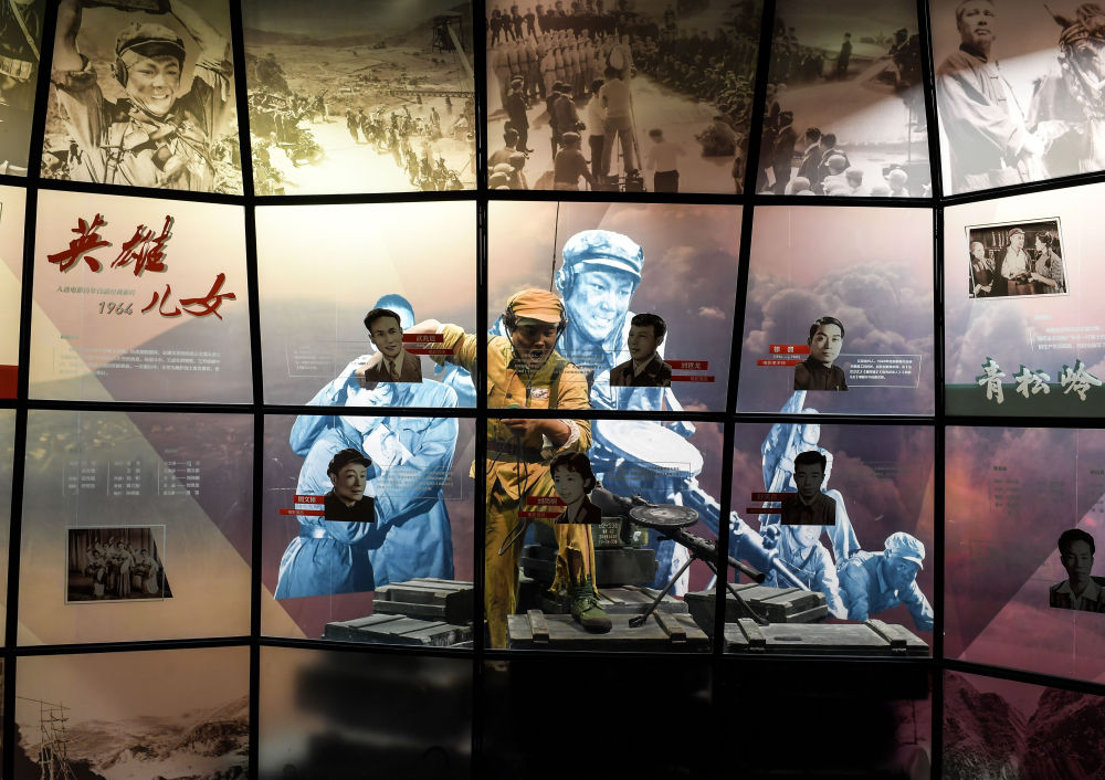 長影舊址博物館內(nei) 電影《英雄兒(er) 女》的簡介和電影道具。新華社記者 許暢 攝