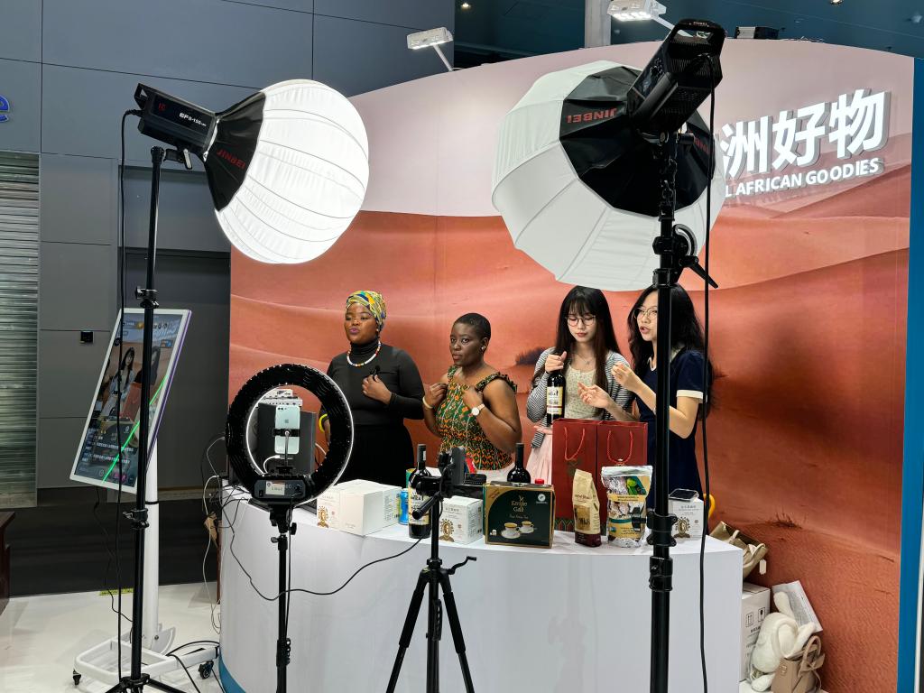 南非的紅酒、埃塞俄比亞(ya) 的咖啡、肯尼亞(ya) 的紅茶……在“智慧非洲”展台一角,來自南非和中國的4名大學生變身帶貨主播,通過TikTok和抖音平台將各類“非洲好物”推廣至海內(nei) 外。