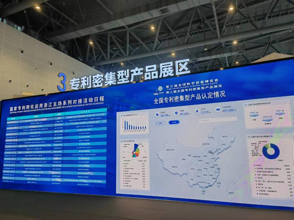 走進數貿會(hui) 3號場館,“專(zhuan) 利密集型產(chan) 品展區”幾個(ge) 大字映入眼簾。本屆數貿會(hui) 上,有來自全國多地的320家企業(ye) 的500餘(yu) 件專(zhuan) 利密集型產(chan) 品對外亮相。