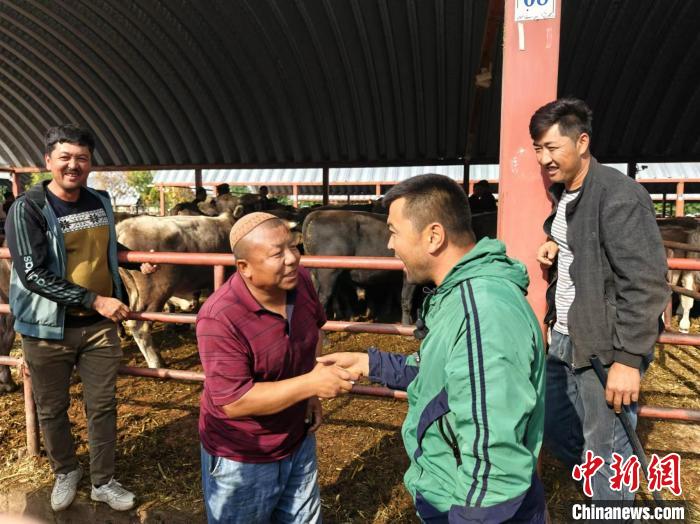 依力夏提·阿不都熱依木其實很少有擔心“牛賣不掉”的時候,入行已近20年的他懂牛,也懂行情。這個(ge) 月還沒過完,他已經賣了五六百頭牛。采訪當天,他從(cong) 新源、尼勒克和昭蘇等地拉來80頭牛,並信心十足地表示當天能全部賣完。他說,生意好的時候,一年下來能掙三四十萬(wan) 元。