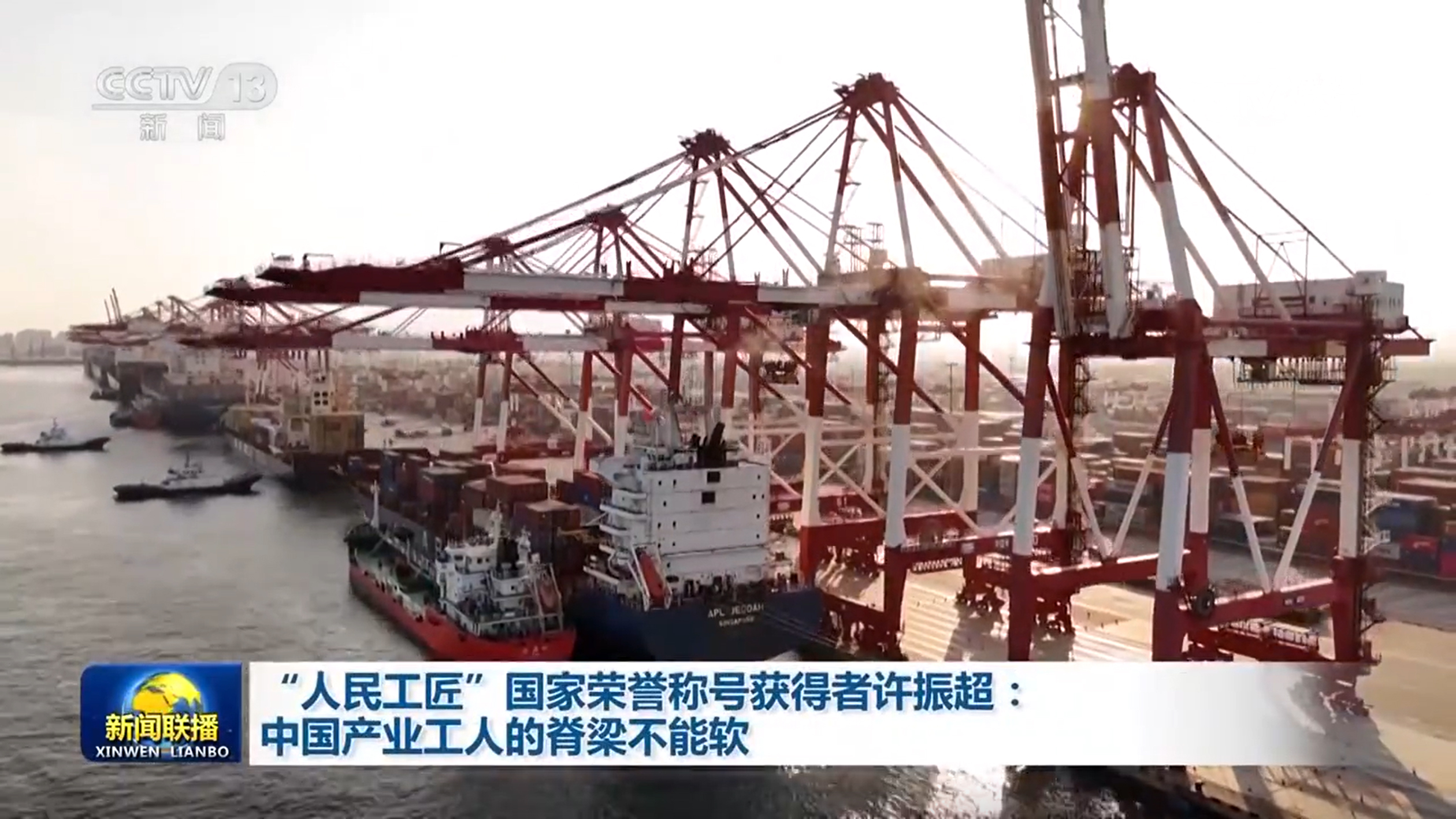 央視網消息(新聞聯播):他帶領團隊九次打破集裝箱裝卸的世界紀錄,開創了全國聞名的“振超效率”,他就是“人民工匠”國家榮譽稱號獲得者許振超。