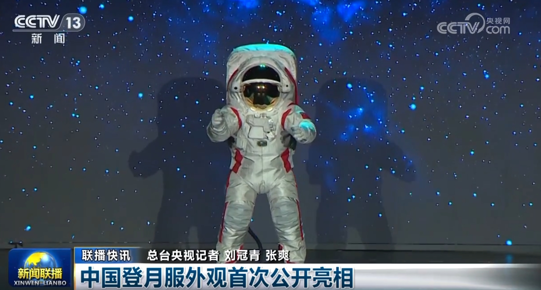 9月28日,中國載人航天工程辦公室麵向社會(hui) 發布登月服征名活動,並首次公開中國登月服外觀。此次亮相的中國登月服外觀,上身裝飾帶設計融合了飛天飄帶的優(you) 雅飄逸和傳(chuan) 統鎧甲的硬朗厚重,體(ti) 現了剛柔並濟的中國哲學;腿部裝飾帶設計成火箭升空尾焰造型,與(yu) 上身呼應,形成一飛衝(chong) 天的勢態,體(ti) 現了中國騰飛的設計理念。