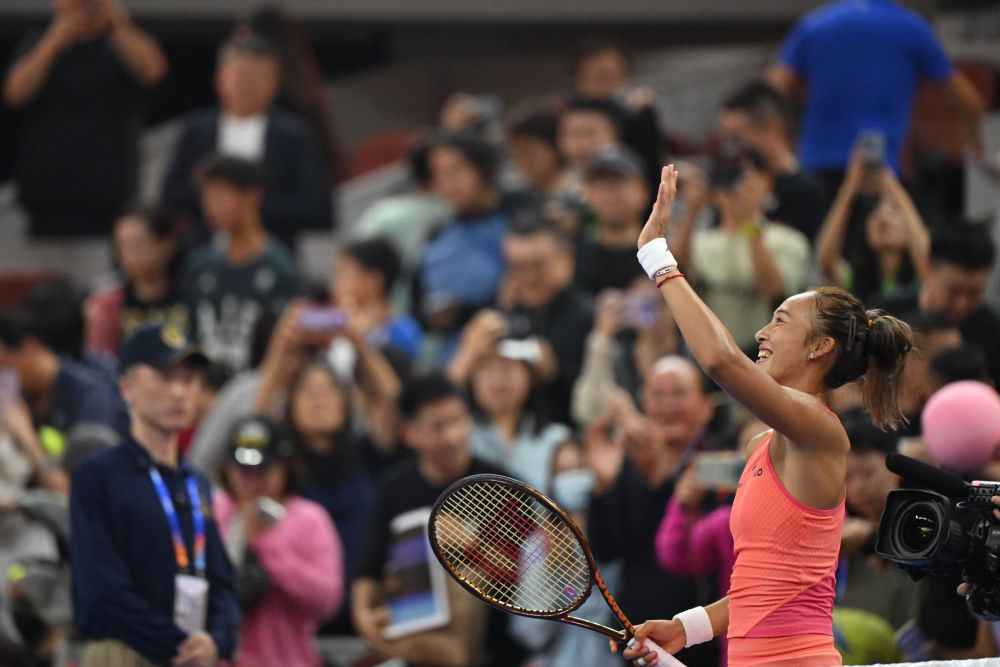 9月28日,鄭欽文在賽後向觀眾(zhong) 致意。當日,在北京進行的2024中國網球公開賽女單第二輪比賽中,中國選手鄭欽文2:0戰勝俄羅斯選手拉希莫娃,晉級下一輪。新華社記者 張龍 攝