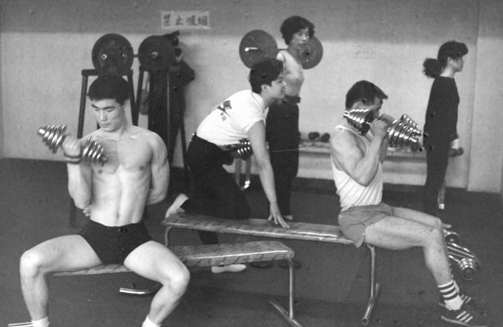 1990年北京市民利用業(ye) 餘(yu) 時間進行健美訓練。新華社發