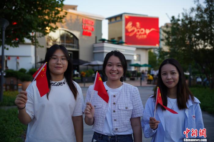 林泳妤和同學張卓楠(左)、周凱嵐(右)共同為(wei) 祖國母親(qin) 送上祝福。陳銀沙 攝