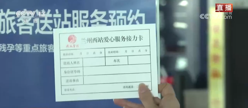 記者手裏拿的“愛心服務接力卡”是今年車站升級的服務。針對沒有車票不能接送站的情況,可以在進站口說明情況之後領取“接力卡”作為(wei) 通行的憑據,在卡片上寫(xie) 清楚個(ge) 人信息、聯係方式和進站事由之後,直接進站接送老幼病殘孕等重點旅客,出站時再把這張接力卡交回工作人員手中,完成閉環服務。