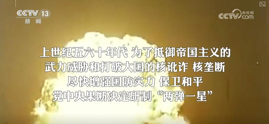 上世紀五六十年代,為(wei) 了抵禦帝國主義(yi) 的武力威脅和打破大國的核訛詐、核壟斷,盡快增強國防實力、保衛和平,黨(dang) 中央果斷決(jue) 定研製“兩(liang) 彈一星”。