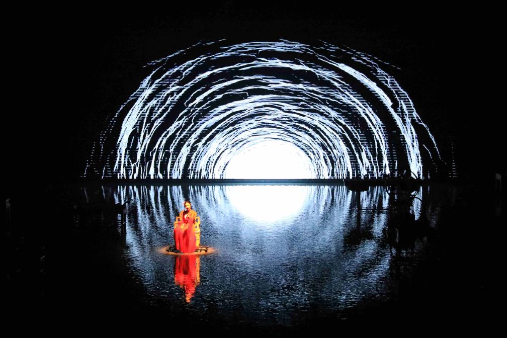 36扇高大的雕花木門輕啟,演員曼妙起舞;舞台上光影變幻,不時落下層層水簾……“太震撼了!”觀眾(zhong) 們(men) 不約而同發出感歎。