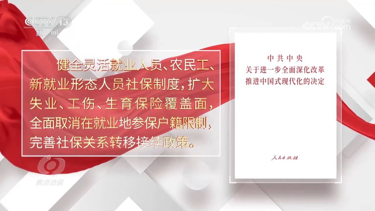 黨(dang) 的二十屆三中全會(hui) 對健全社會(hui) 保障體(ti) 係作出全方位部署,提出“健全靈活就業(ye) 人員、農(nong) 民工、新就業(ye) 形態人員社保製度,擴大失業(ye) 、工傷(shang) 、生育保險覆蓋麵,全麵取消在就業(ye) 地參保戶籍限製,完善社保關(guan) 係轉移接續政策。”