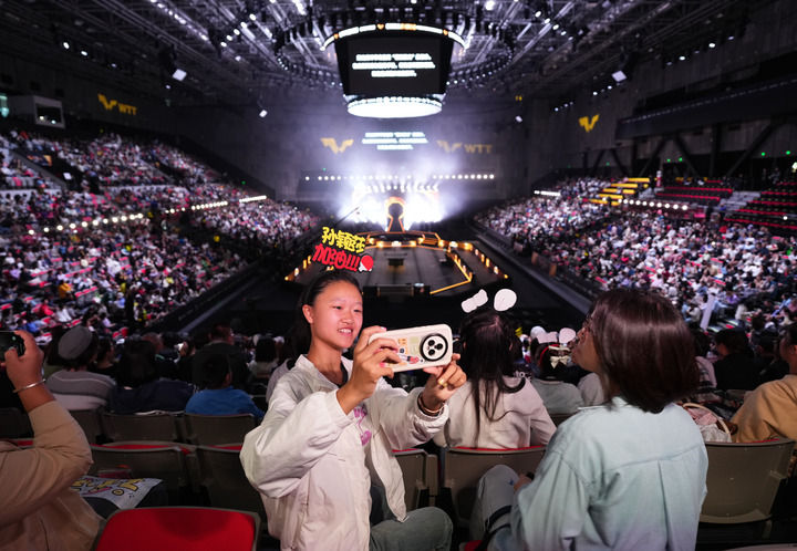 10月3日,觀眾(zhong) 來到首鋼園區觀看世界乒乓球職業(ye) 大聯盟(WTT)中國大滿貫賽。新華社記者 張晨霖 攝