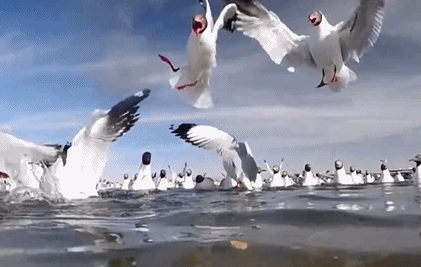 青海湖國家級自然保護區內(nei) ,棕頭鷗們(men) 聚到水麵上覓食、嬉戲,讓平靜的湖麵變得熱鬧無比。