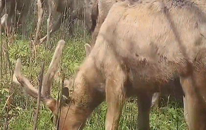 湖北石首麋鹿國家級自然保護區內(nei) ,麋鹿們(men) 常常結成大群活動,而每每一見到美食,它們(men) 就抵不住誘惑,立馬沉浸式地埋頭享用起來。