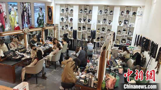 喀什古城景區旅拍店生意火爆。董曉 攝