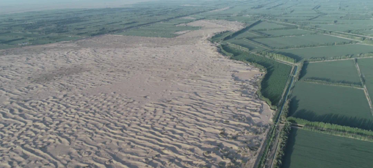 荒山寂寥鳥影絕,古道蒼茫人跡滅。七秩之前,新疆塔克拉瑪幹沙漠便呈現此般荒涼之景,人跡罕至。沙漠邊緣的城郭,長年累月經風沙侵蝕,經濟發展始終受限。新中國的誕生,為(wei) 那片曾經貧瘠荒涼的沙漠帶來了生機。一群英勇的人們(men) ,懷揣著堅定的信念,將這裏取名阿拉爾(蒙古語:匯聚)展開了一場又一場浩大的防沙治沙戰役。從(cong) 那一刻起,新疆大地上演了一幕幕令人讚歎的生態修複傳(chuan) 奇,為(wei) 沙漠披上了一層層的綠色紗衣。
