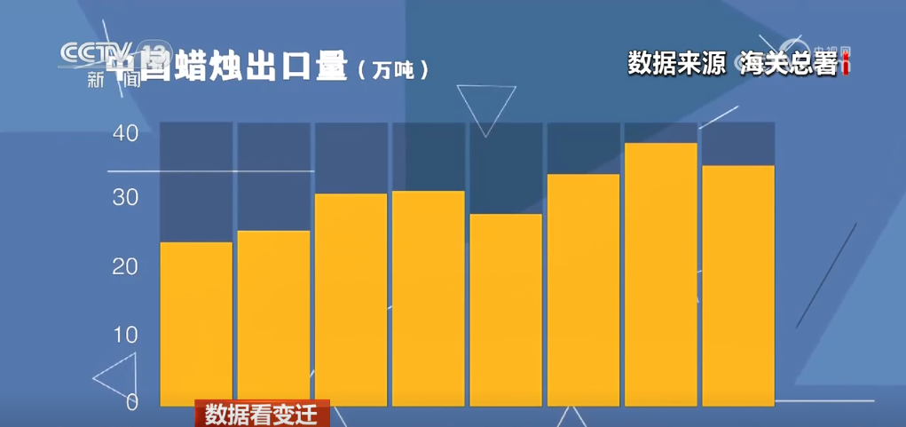 隨著電力普及,蠟燭在國內(nei) 逐漸淡出人們(men) 的視線,但卻在海外大放異彩。近10年來,我國蠟燭年度出口量邁過30萬(wan) 噸關(guan) 口,和中國綠茶一年的出口量相當。中國蠟燭“漂洋過海”去往全球160多個(ge) 國家和地區,穩坐全球蠟燭貿易“頭把交椅”。國內(nei) 蠟燭相關(guan) 企業(ye) 增加到約1.02萬(wan) 家,近50%的企業(ye) 成立於(yu) 10年之內(nei) ,傳(chuan) 統的蠟燭產(chan) 品向高附加值邁進。