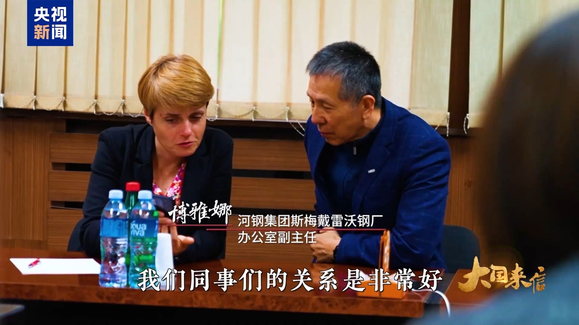 河鋼集團斯梅戴雷沃鋼廠辦公室副主任 博雅娜:我們(men) 同事們(men) 的關(guan) 係是非常好。如果有啥事,我們(men) 是幫忙。他們(men) 經常給我做餃子,他們(men) 都知道我喜歡吃。