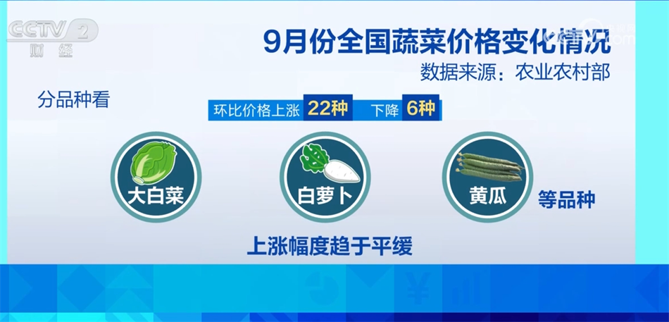 專(zhuan) 家表示,9月份全國蔬菜在田麵積同比增長1.9%,處於(yu) 年內(nei) 較高水平,穩產(chan) 基礎好,預計後期蔬菜價(jia) 格逐步轉入季節性下行。
