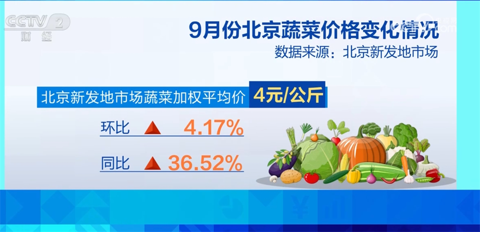 不僅(jin) 西紅柿,豆角、芹菜、西蘭(lan) 花等蔬菜也由於(yu) 產(chan) 地降雨造成了種植期推遲、上市期延後,近期供應偏緊,價(jia) 格上漲明顯,像目前芹菜的價(jia) 格為(wei) 每斤3元,比去年同期每斤上漲了2元。整個(ge) 9月份,北京新發地市場蔬菜的加權平均價(jia) 為(wei) 每公斤4元,比8月份上漲4.17%,比去年同期上漲36.52%。