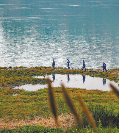 四川宜賓的巡護隊員正在長江邊的一處魚類產(chan) 卵地進行巡護。莊歌爾攝(人民視覺)