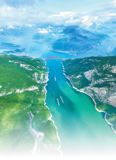 綠色轉型,高質量發展動能澎湃。黃金水道暢通低碳,今年前7月長江幹線港口完成貨物吞吐量超22億(yi) 噸,純電動遊輪往來穿梭、綠色港口點綴其間。“綠色引擎”更加強勁,烏(wu) 東(dong) 德、白鶴灘、溪洛渡、向家壩、三峽、葛洲壩6庫聯調,1滴長江水發6次電,世界最大清潔能源走廊總裝機容量達7169.5萬(wan) 千瓦。創新引領綠色發展,現代產(chan) 業(ye) 集群快速壯大,新動能新優(you) 勢積極塑造發展。