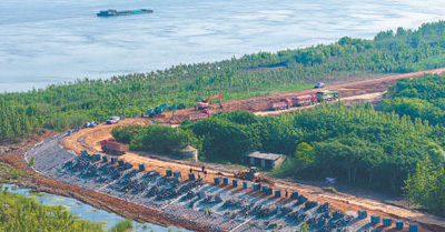 長江安徽蕪湖段整治工程施工現場。該工程建成後可進一步提升防洪能力,改善生態環境。肖本祥攝(人民視覺)