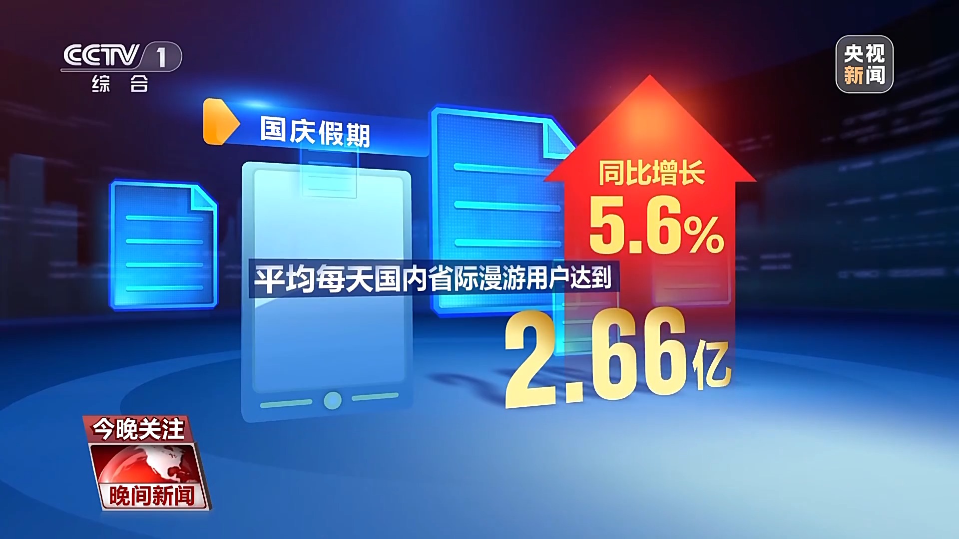 記者從(cong) 工業(ye) 和信息化部了解到,國慶假期,平均每天國內(nei) 省際漫遊用戶達2.66億(yi) ,同比增長5.6%;國際及港澳台地區 平均每天漫遊入境用戶達696萬(wan) ,同比增長20.7%;5G/4G日均流量同比增長13%。