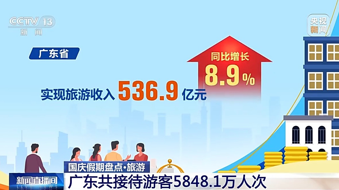 廣東(dong) 省10月1日至7日累計接待遊客5848.1萬(wan) 人次,按可比口徑同比增長6.2%;實現旅遊收入536.9億(yi) 元,同比增長8.9%。古驛道沿線重點區域、紅色旅遊經典景區、鄉(xiang) 村旅遊點和曆史古村落等,成為(wei) 旅遊出行熱點。
