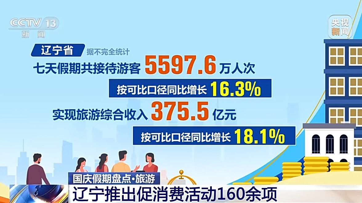 遼寧省據不完全統計,七天假期共接待遊客5597.6萬(wan) 人次,按可比口徑同比增長16.3%,實現旅遊綜合收入375.5億(yi) 元,按可比口徑同比增長18.1%。假期裏遼寧省推出促消費活動160餘(yu) 項,全省各地舉(ju) 辦文化藝術、群眾(zhong) 文化、非遺、文博等各類活動600餘(yu) 場,通過線上線下聯動的方式,豐(feng) 富人們(men) 假日文化生活。