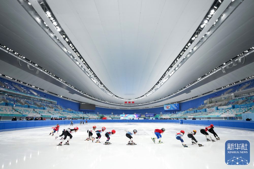 2023年1月6日,小朋友們(men) 在國家速滑館進行短道速滑訓練展示。新華社記者 鞠煥宗攝