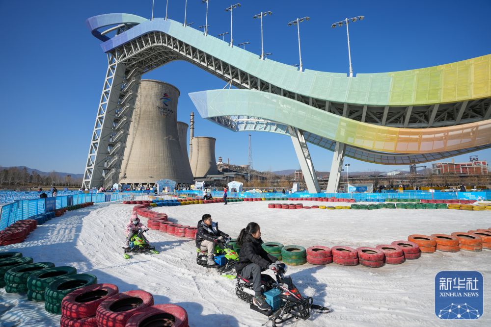 遊客在首鋼滑雪大跳台下的“首鋼園冰雪匯”體(ti) 驗雪上遊樂(le) 項目(2023年1月31日攝)。 新華社記者 鞠煥宗 攝