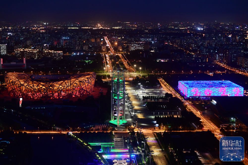 這是2022年6月23日拍攝的國家體(ti) 育場(左)與(yu) 國家遊泳中心夜景。作為(wei) “雙奧之城”的標誌性場館群“冰絲(si) 帶”、“鳥巢”、“冰立方”聯動亮燈,共同傳(chuan) 遞奧林匹克精神,號召民眾(zhong) 用運動點亮健康生活,創造美好未來。 新華社記者 張晨霖 攝