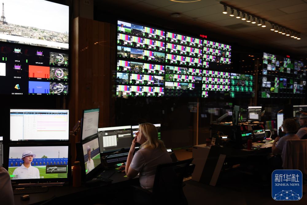 工作人員在奧林匹克廣播服務公司轉播技術中心工作(2024年7月25日攝)。 阿裏雲(yun) 與(yu) 奧林匹克廣播服務公司(OBS)共同打造的OBS Cloud成為(wei) 巴黎奧運全球轉播的重要基礎設施。 新華社記者 黃宗治 攝