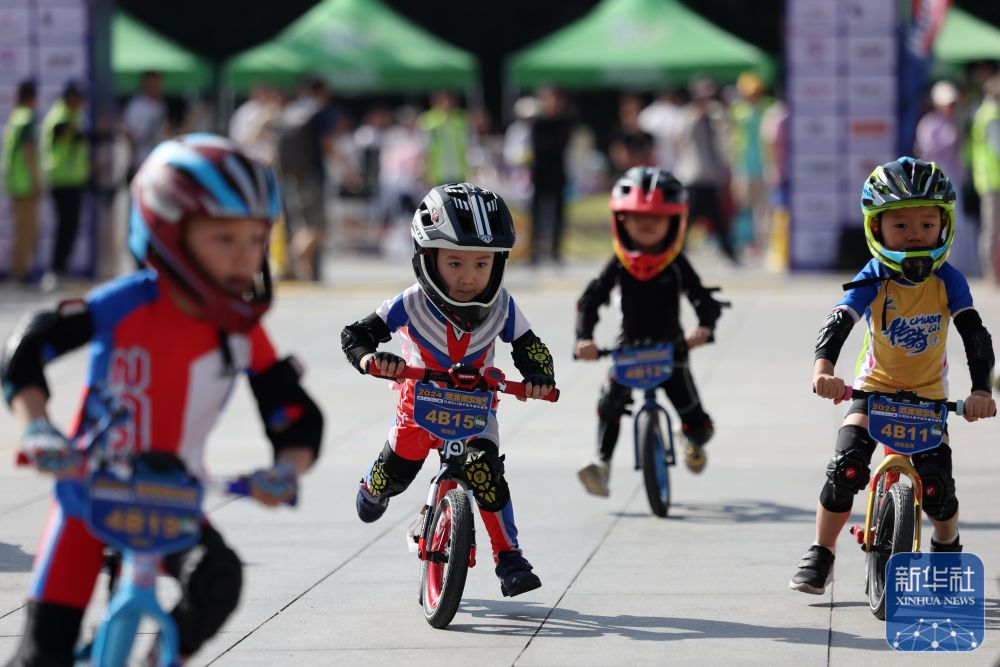 2024年6月22日小選手寒博贇(左二)在比賽中騎行。當日,2024甘肅省兒(er) 童平衡車童車聯賽在甘肅省蘭(lan) 州市甘肅大劇院廣場開賽。新華社記者 陳斌 攝