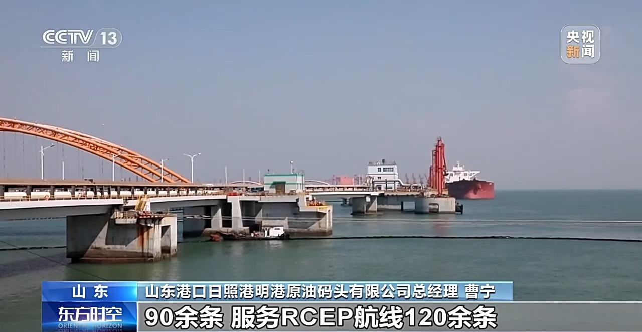 山東(dong) 港口日照港明港原油碼頭有限公司總經理 曹寧:目前有麵向共建“一帶一路”國家航線90餘(yu) 條、服務RCEP航線120餘(yu) 條,為(wei) 我國北方貿易通達全球提供重要助力。
