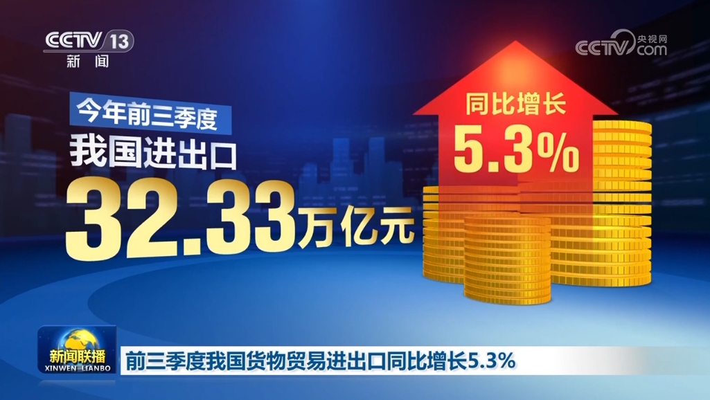 據海關(guan) 統計,今年前三季度,我國進出口32.33萬(wan) 億(yi) 元,同比增長5.3%。其中出口18.62萬(wan) 億(yi) 元,增長6.2%;進口13.71萬(wan) 億(yi) 元,增長4.1%。