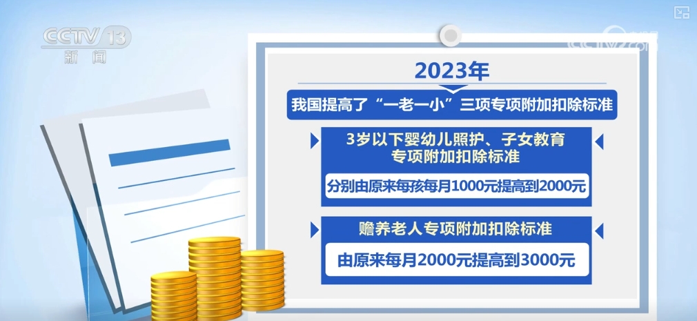 國家稅務總局發布的數據還顯示,2023年,我國提高了關(guan) 於(yu) “一老一小”的三項專(zhuan) 項附加扣除標準後,減稅效果明顯。