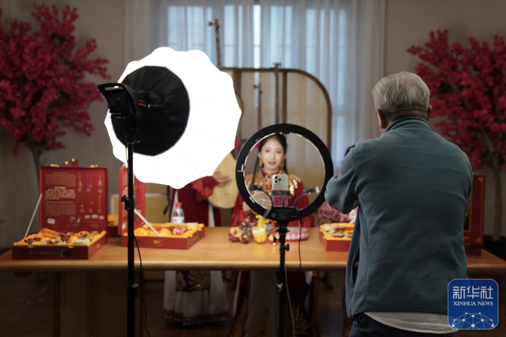 10月15日,與(yu) 會(hui) 嘉賓在阿克蘇地區新和縣加依村龜茲(zi) 文化樂(le) 器展示中心觀看工作人員直播。