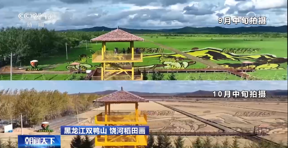 現在看到的綠色的稻田畫是9月中旬記者在黑龍江省雙鴨山市饒河縣拍攝的,黃色的稻田畫是10中旬同一地方拍攝。豐(feng) 收前的稻田綠意盎然,稻葉挺拔、稻花清香、充滿生機;即將迎來豐(feng) 收的稻田稻穗垂掛,陽光下金光閃閃,田野如金色海洋般燦爛,美不勝收。
