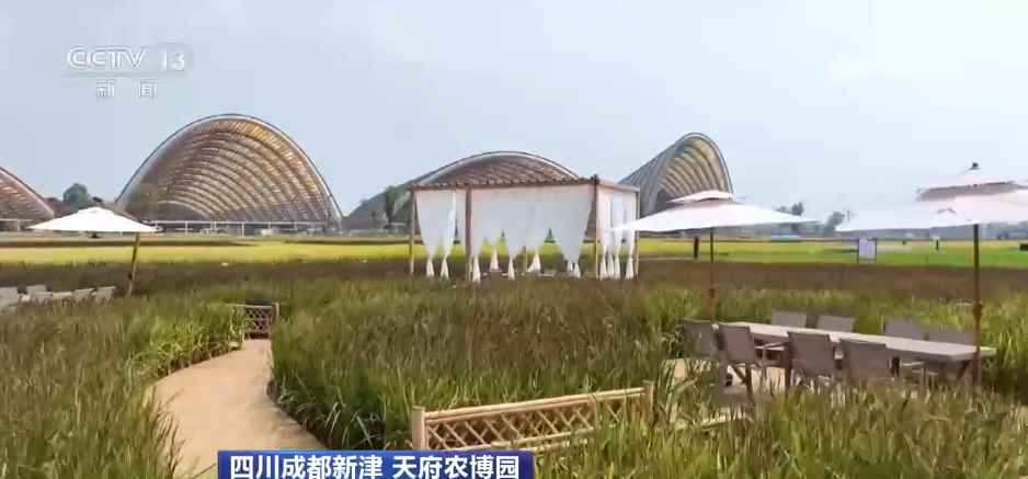 四川成都新津天府農(nong) 博園裏,紫黑、紫紅、金黃三種特種稻種和大田水稻一起組成多彩圖案和造型,每畝(mu) 預計產(chan) 量躍上800斤的新高。稻田邊創意湧動,一杯杯稻田咖啡香醇四溢,一朵朵葵花正在向陽綻放,悠然演奏著喜悅豐(feng) 收的“大地樂(le) 章”。