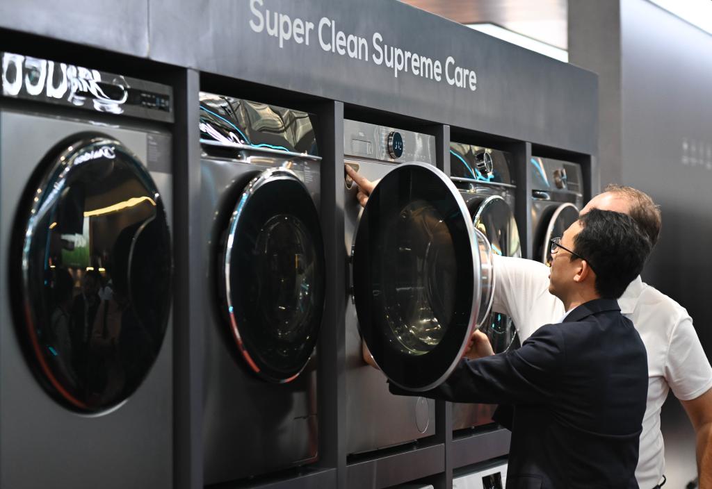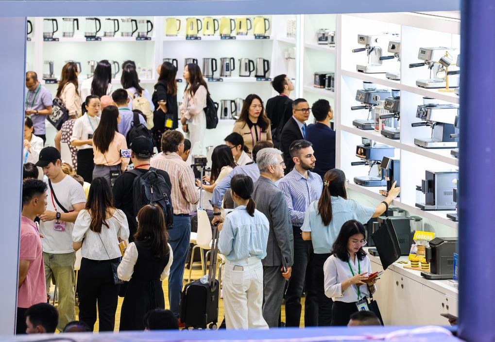 10月15日,境外采購商觀看參展企業(ye) 家電產(chan) 品。新華社記者鄧華 攝